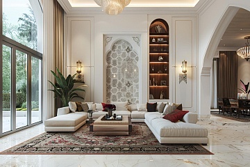 Interior design in the Arabic style is about richness, refinement, and meanings hidden behind each ornament. For example, in the villa in Ajman, the incorporation of both conventional proxies and new stylistic trends results in an elegant, classic design. Having a living room or even a comfortable place in a house that forms the central place of living, it is possible to combine such an arrangement of furniture. Look at some thrilling modern Arabic living room interior design ideas, such as villas for sale in Ajman, that will make your space spectacular.